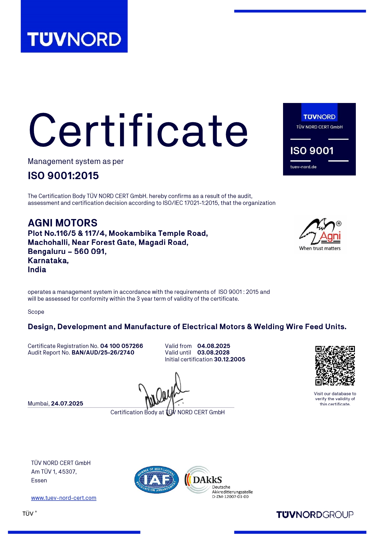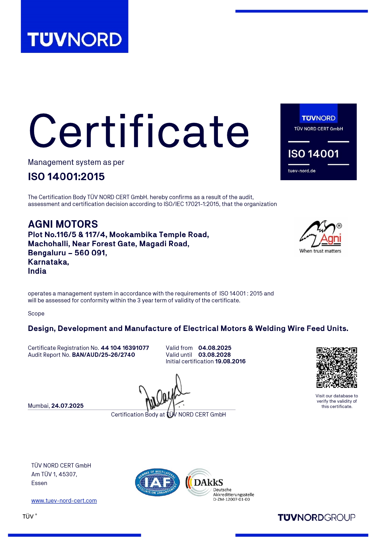 AGNI MOTORS was started in 2001 by B.M. Venkatesh with a group of engineers who shared his dream and passion with the vision to be a global leader in design and manufacturing of Fractional Horse Power Motors(FHP).